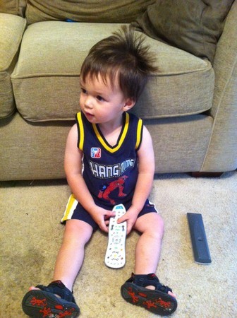 On a recent shopping trip I was in the bakery aisle browsing some cake mixes. When I finally settled on a traditional yellow mix with chocolate frosting and went to put the items in the cart, baby Matthew’s mouth and hands were covered in chocolate, and chocolate chips were scattered all over the cart and on the floor. Apparently I parked too close to the shelves, because Matt innocently grabbed a bag of chocolate chips, somehow opened it up (not sure how he did that, because to this day he cannot even put on his shoe), and starting cramming morsels into his mouth.